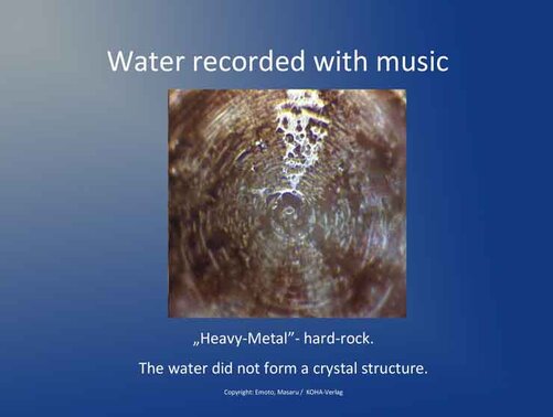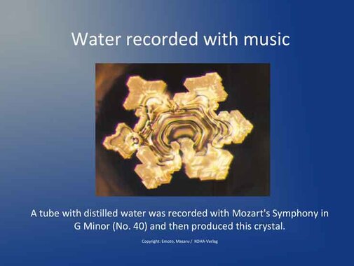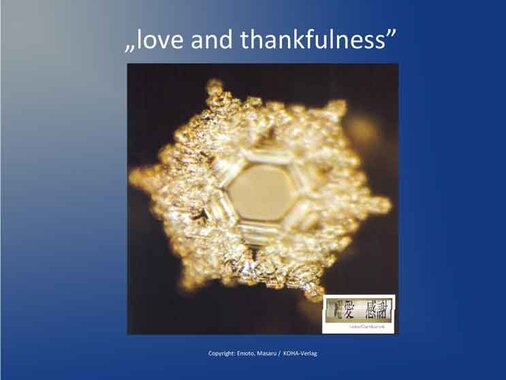 Water and characters: Even more amazing is the reaction of water to words and names, especially to the fact that the meaning of these words is pictorially reproduced and either forms beautiful forms - or does not crystallize ....